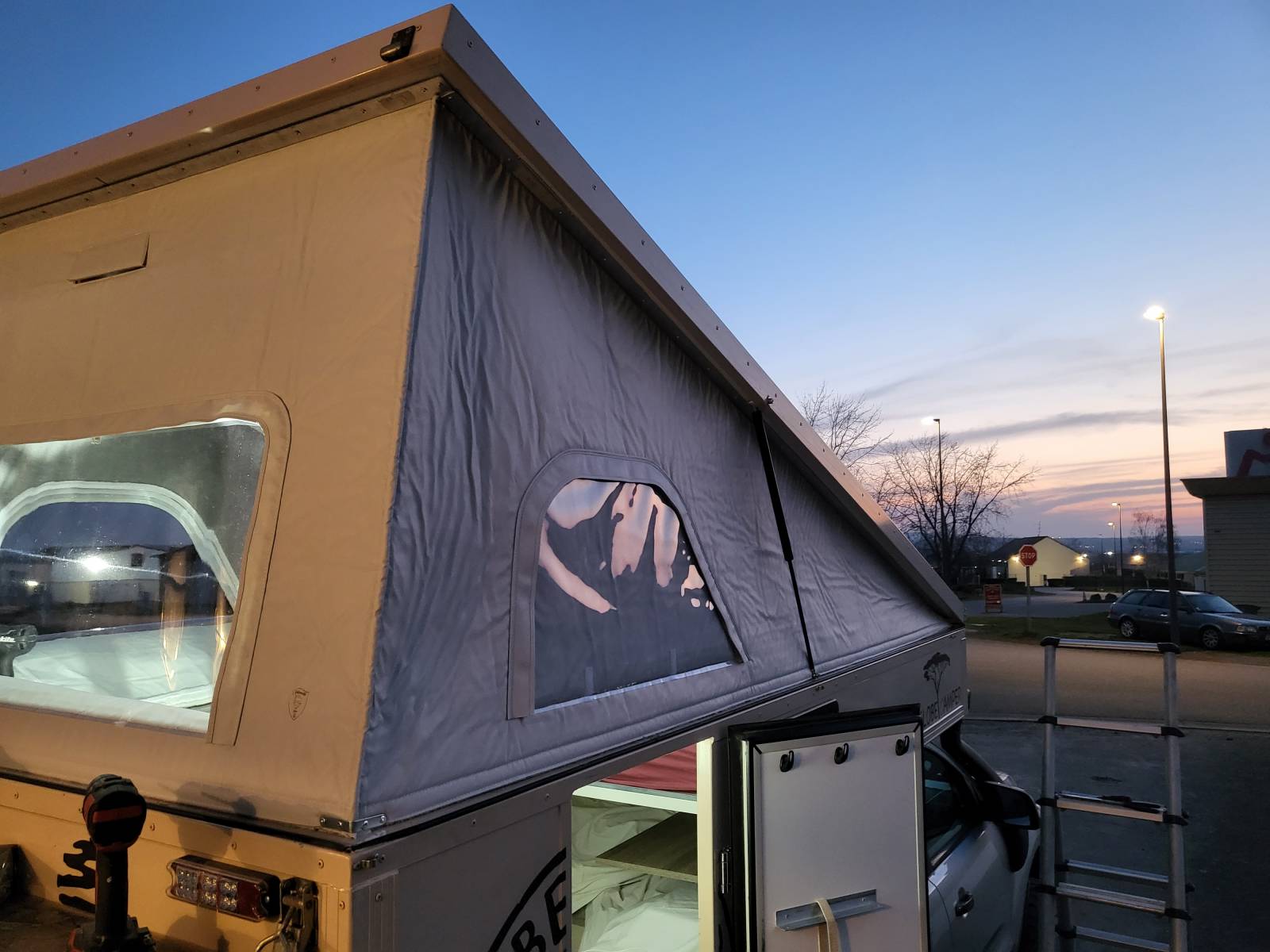 La toile isolée se compose, suivant nos habitudes, d'un pvc extérieur pour une étanchéité absolue, de notre nouveau isolant monocouche naturel et de tissu anti-tache intérieur. Les ouvrants ayant été beaucoup retravaillé par rapport à l'origine, se composent de moustiquaire intérieur, d'un volet d'occultation-isolation au milieu et d'un transparent souple en extérieur.
